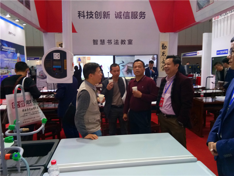 這一次盛大的教育裝備展覽會中,新科教學設備也攜帶了自身的教育裝備產品進駐展會,包括智慧書法教室、智慧實驗技能考核系統實驗室、智慧頂裝系統實驗室及新型材料的實驗室桌椅等產品。在現場,有不少教育行業專家和商家上前咨詢,為新科展位累積了不少人氣。