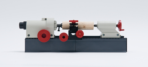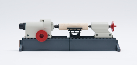 和工業木工車床結構相同,圓木料夾持在卡盤與頂尖之間,右手緊握手持車刀擱置在刀臺上,在左手拇指依托下,用幾種基本刀法,車制各種回轉體,軸、圓柱、錐、圓球、國際象棋等。車削后經砂紙打磨,便成為一件精美的工藝品。